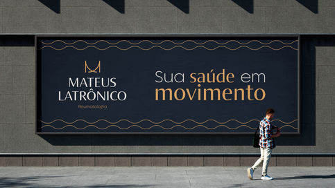A criação do símbolo do médico reumatologista Mateus Latrônico reflete a intenção de transmitir fluidez, confiança e especialização.O design centraliza a letra "M", formada por dois "L" entrelaçados, que possuem uma curvatura sutil, trazendo um toque de suavidade à forma. Essa curvatura não apenas reflete o movimento das articulações, mas também simboliza a flexibilidade e o alívio que o tratamento reumatológico proporciona aos pacientes. O entrelaçamento das letras, com suas linhas suaves e orgânicas, sugere uma sensação de acolhimento, ao mesmo tempo que transmite seriedade e competência, fundamentais no contexto médico. A escolha do formato da logo representa não só a união dos elementos, mas também a ideia de reconectar e restaurar o equilíbrio do corpo, refletindo o objetivo do reumatologista em proporcionar a mobilidade e a qualidade de vida para aqueles que sofrem de problemas articulares.